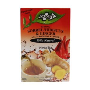 A box of 18 teabags featuring a vibrant, tart, and warming blend of Hibiscus (Sorrel) and Ginger, perfect for a refreshing, ruby-red tonic.