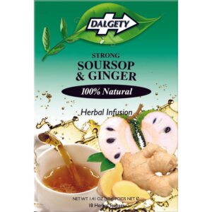 A box of 18 teabags combining Soursop leaves with warming Ginger, offering a unique blend for digestion and general well-being.