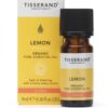 A 9ml bottle of vibrant Lemon essential oil, cold-pressed from the fresh peel of the lemon fruit. It has a sharp, intensely fresh, and clean citrus scent that is incredibly uplifting and purifying. It is widely used for its cleansing properties in home care, to boost mental focus, and to instantly freshen any environment.