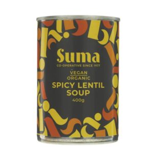 A convenient, ready-to-eat can of organic spicy lentil soup, providing a warming, flavourful, and deeply satisfying meal. This vegan soup features lentils (a great source of protein) combined with a bold blend of spices for a subtle heat.
