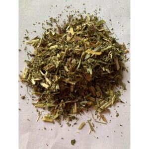 Dried hyssop leaves and flowers, offering a slightly bitter, minty, and pungent flavour. It is used both in culinary applications (soups, stews) and traditionally as a tea for respiratory support.