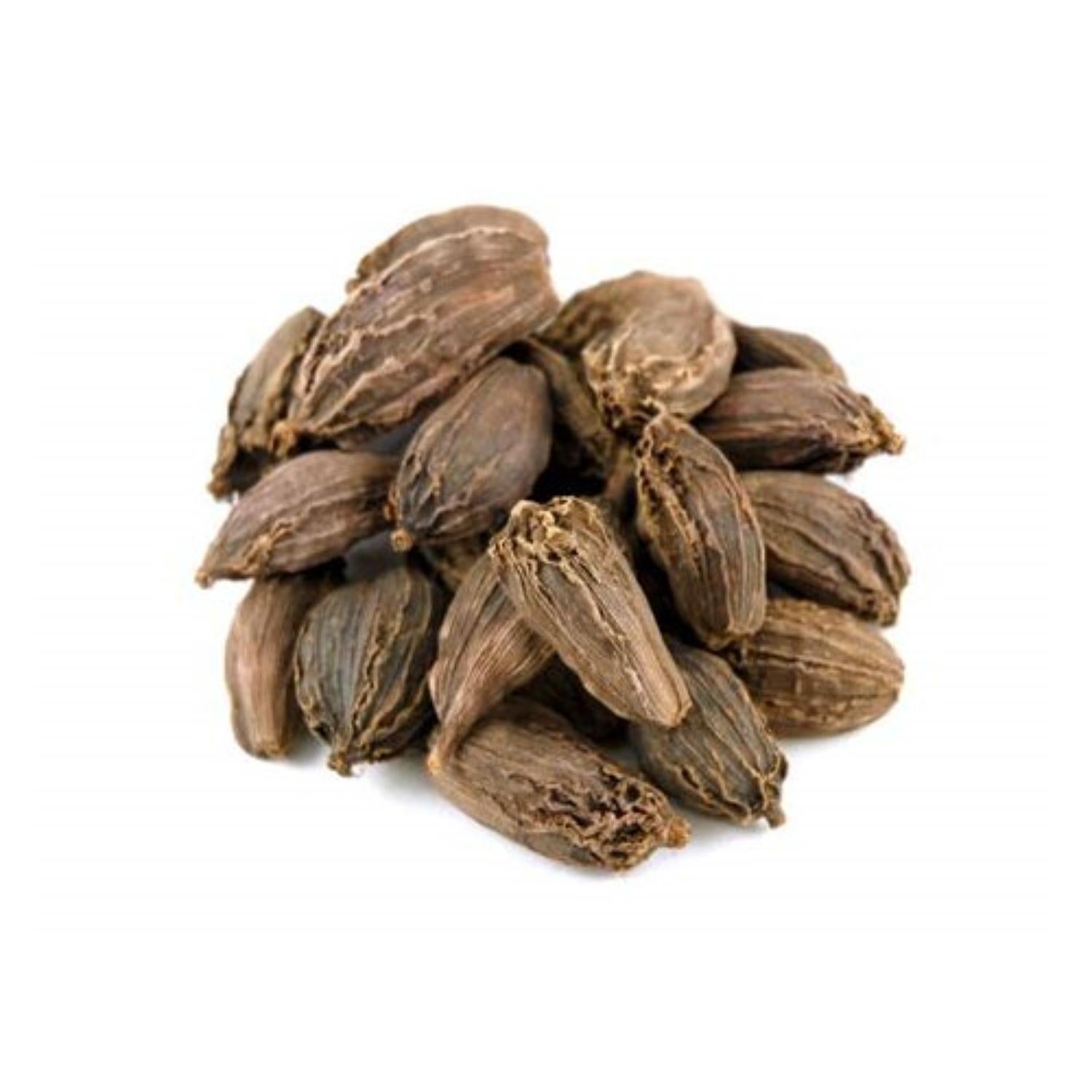 Whole organic green cardamom pods, containing intensely aromatic black seeds. Cardamom offers a highly fragrant, slightly resinous, and complex citrus-eucalyptus flavour, essential for high-quality Indian desserts, rice, and Scandinavian baking.