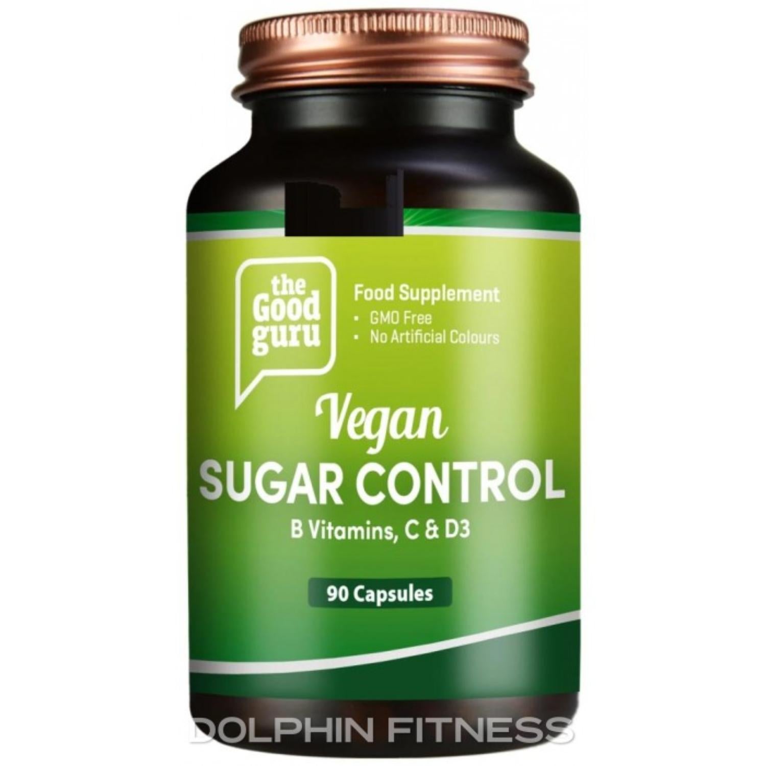 A bottle of 90 vegan capsules containing a plant-based formula designed to help manage blood sugar levels and cravings. This supplement uses botanicals and compounds traditionally associated with glucose metabolism and control.