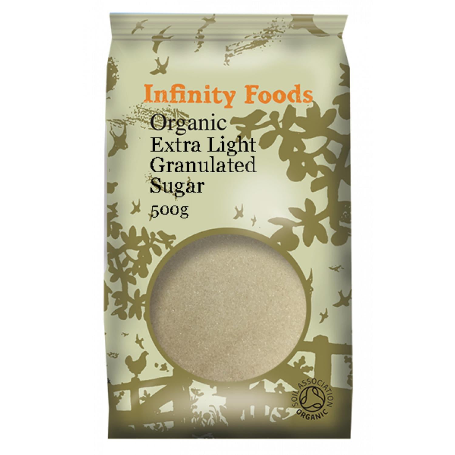 A fine, high-quality organic granulated cane sugar that is minimally processed for a clean, natural sweetness. This ‘extra light’ variety is perfect for general baking, sweetening drinks, and whenever a pure, crisp sugar flavour is required without the deep notes of brown or unrefined sugars.