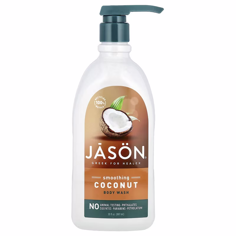 Jason Body Wash 887 ml – Coconut – A generously sized, gently nourishing body wash infused with organic coconut oil and shea butter to cleanse and soften the skin without drying it out. Ideal for daily use, this rich formula leaves skin feeling smooth and lightly fragranced with a subtle coconut scent.