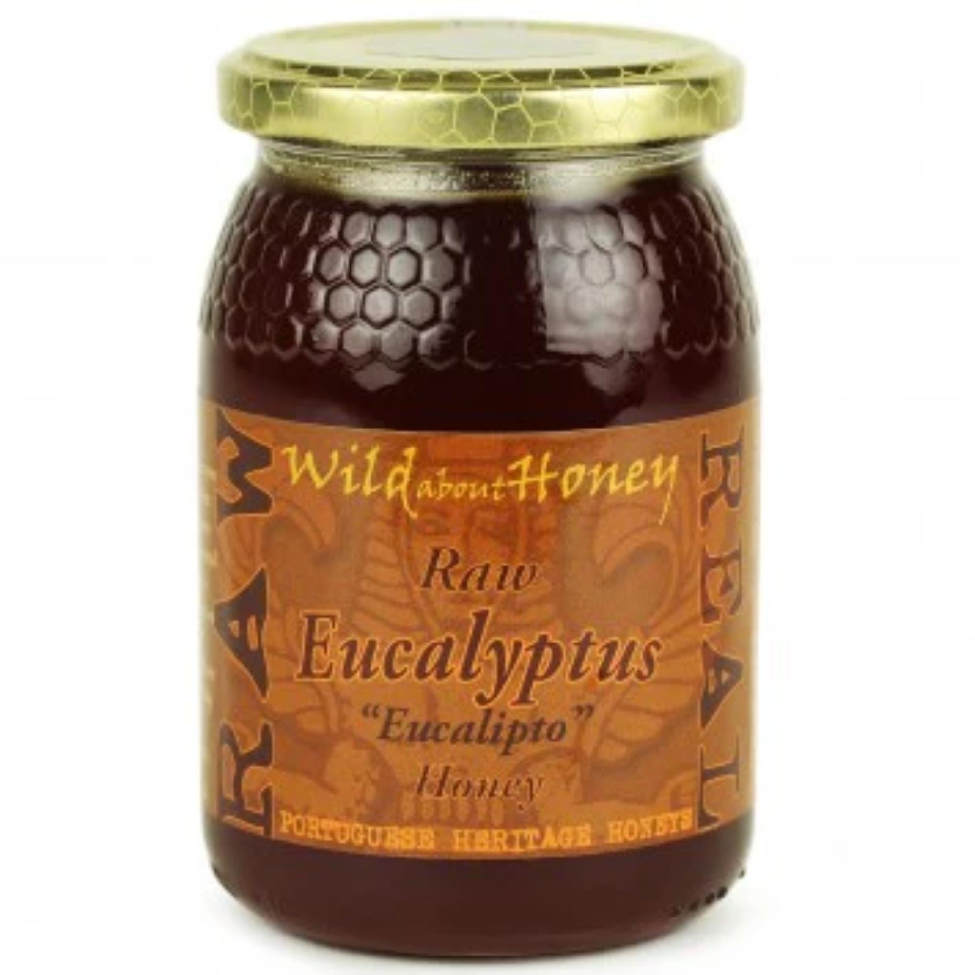 Wild About Honey Portuguese Raw Eucalyptus Honey 500 g – A premium raw honey harvested in the Ribatejo region of Portugal, with approximately 89% eucalyptus nectar. It starts as a rich dark‑amber colour and crystallises to a buttery texture, delivering mellow sweetness with resinous and butterscotch‑like notes. Celebrated for its antibacterial qualities and awarded 2 stars in the Great Taste Awards.