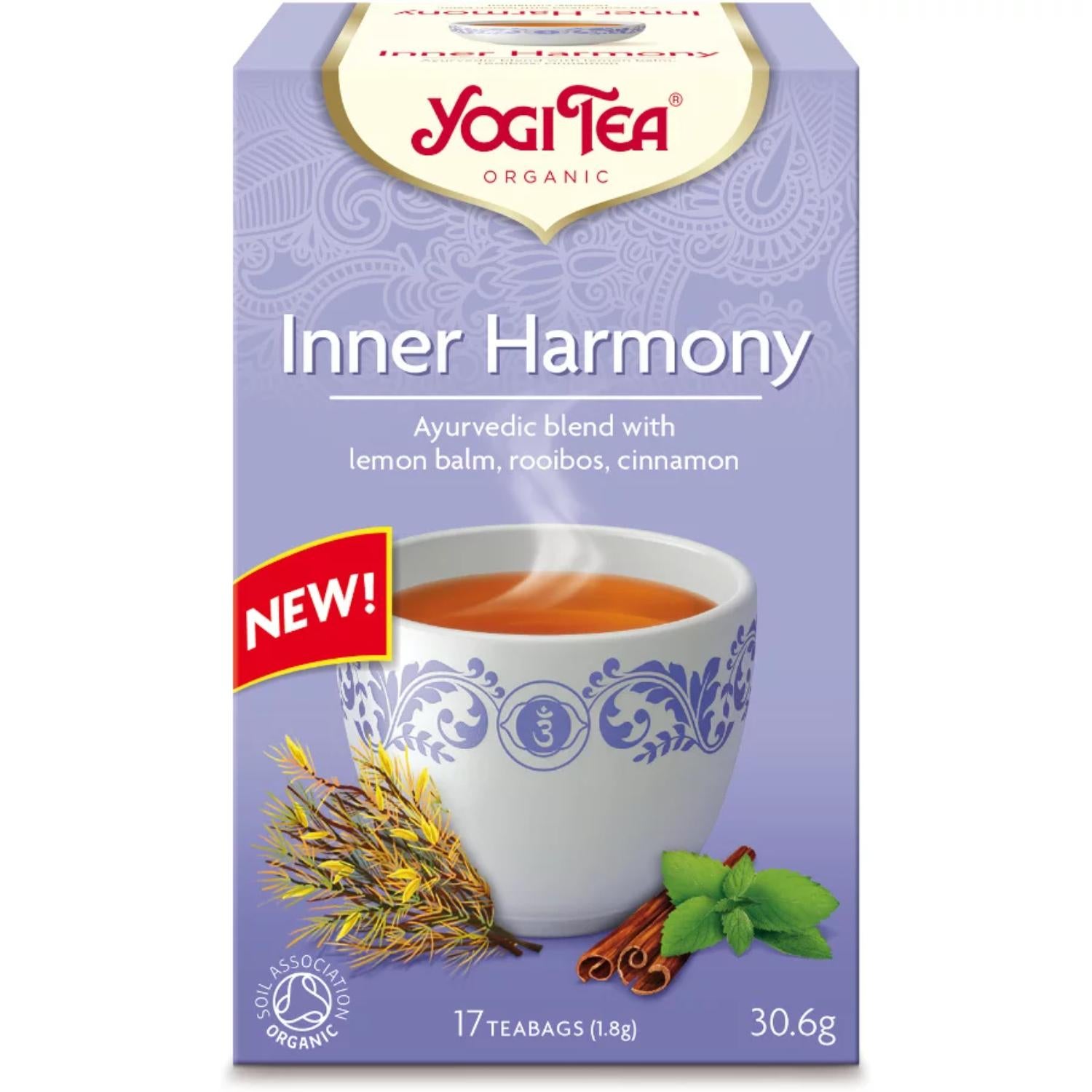 A box of 17 organic tea bags featuring a subtle, balancing, and stress-reducing herbal blend designed to promote a state of calm and equanimity. This blend focuses on gentle, harmonizing ingredients.