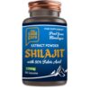 A bottle of 90 capsules combining the mineral-rich resin Shilajit with the highly researched KSM-66 extract of Ashwagandha. This potent combination is designed to support energy, stamina, hormonal balance, and stress management.