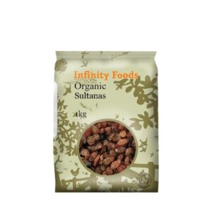 A large, economical package of organic sultanas, ideal for all traditional baking needs, including fruit cakes, scones, and puddings.